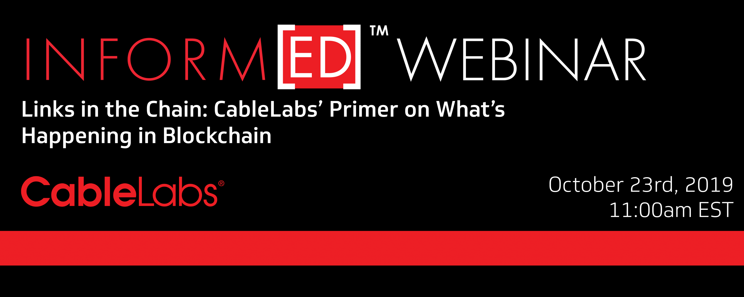 Block your calendars. Chain yourselves to your computers. You will not want to miss this webinar on the state of Blockchain and Distributed Ledger Technology as it relates to the Cable and Telecommunications industry.