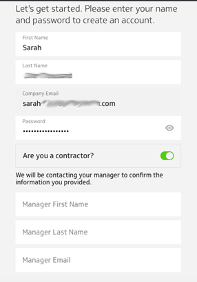 On the first page of registration, identify yourself as a contractor as seen on the screenshot.